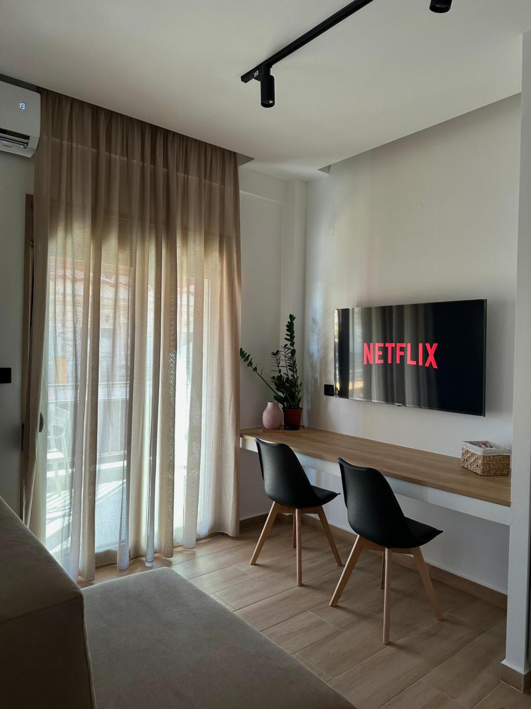 One-Bedroom Apartment. Featuring a private entrance, this air-conditioned apartment consists of 1 living room, 1 separate bedroom and 1 bathroom with a shower and a hairdryer. The fully equipped kitchenette features a stovetop, a refrigerator, kitchenware and a tea and coffee maker. Boasting a terrace with city views, this apartment also provides soundproof walls and a flat-screen TV with streaming services. The unit offers 2 beds.